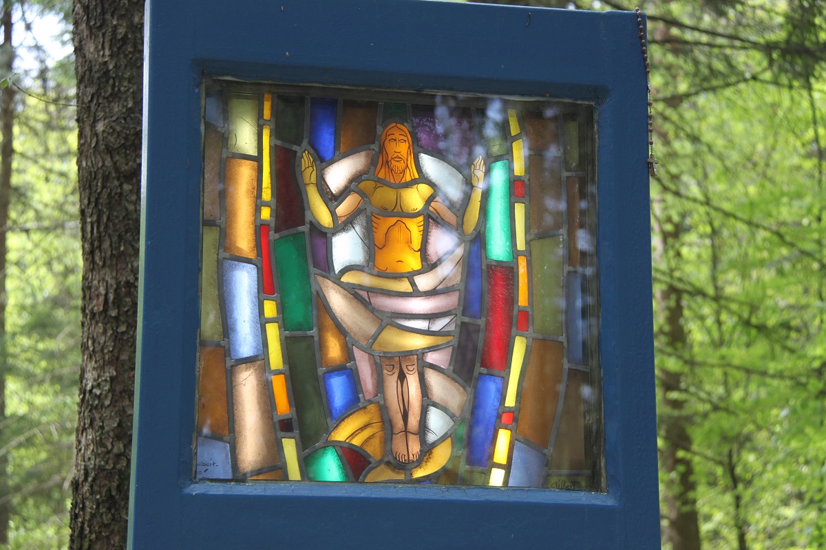 Im parkähnlichen Areal des Wallfahrtsortes von Banneux lädt ein schöner Kreuzweg zum meditativen Gebet ein.