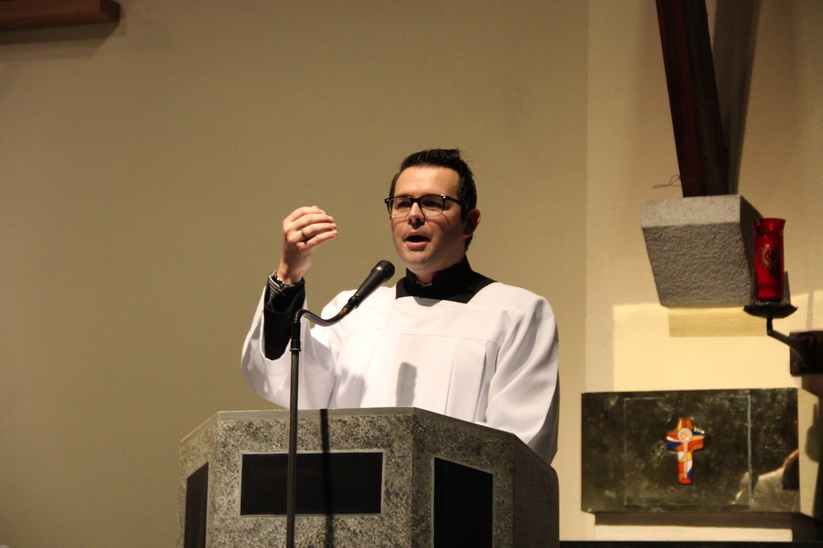 En ce 4ème et dernier dimanche de l’Avent, dans la chapelle du Message remplie comme aux grandes fêtes, une douzaine de célébrants (qui sont passés du blanc au violet !) étaient présents autour du recteur, l’abbé Leo Palm, dont vous pouvez lire l’homélie ici.