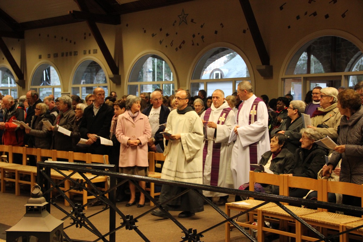 Accueil, aspersion avec l’eau de la Source, bénite, et liturgie de la Parole