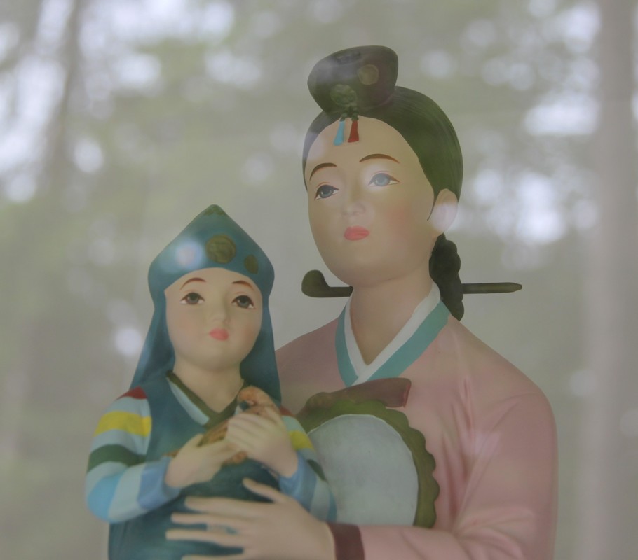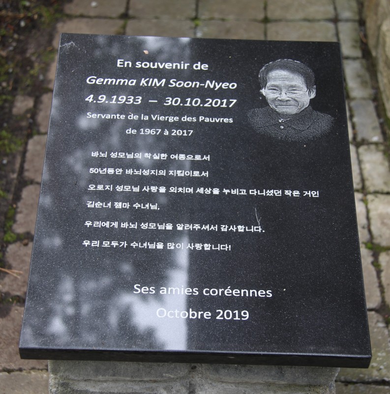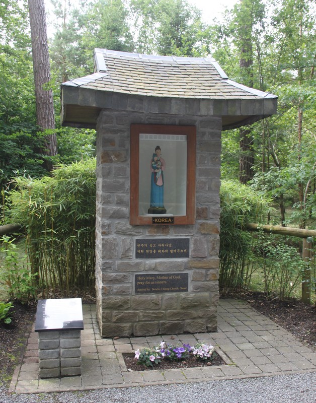 Chaque année, environ 2400 pèlerins coréens viennent auprès de Notre-Dame de Banneux. Beaucoup d’entre eux font partie de groupes de prière fondés par Gemma Kim, ancienne sacristine de Banneux, lors de ses voyages missionnaires en Corée et aux USA. En voyant fleurir dans le sanctuaire les petites chapelles offertes par tant de nations, des chrétiens de Séoul ont eu l’idée de construire celle-ci pour abriter une belle statue de Marie réalisée par une artiste coréenne. Elle y représente leur patrie. Une plaque rappelle le souvenir de Gemma.