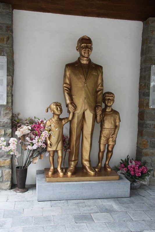 Padre Pio, disciple de saint François d’Assise, a porté 50 ans les stigmates sanglantes du Christ dans son couvent de San Giovanni Rotondo, en Italie. Le 2 mai 1999, Padre Pio est béatifié par le pape Jean-Paul II. La même année, la statue du Padre est érigée au sanctuaire. Sa canonisation a eu lieu le 16 juin 2002.