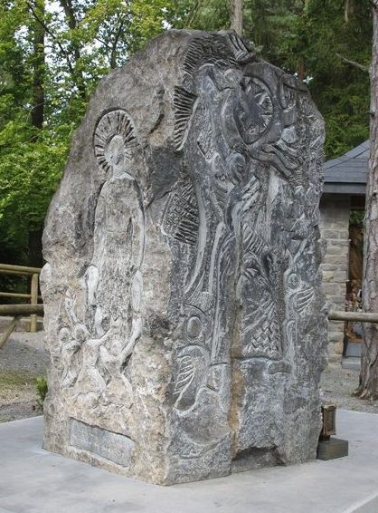 À l’occasion du 50ème anniversaire du pèlerinage des Anglais à Banneux, une stèle présentant une reproduction de