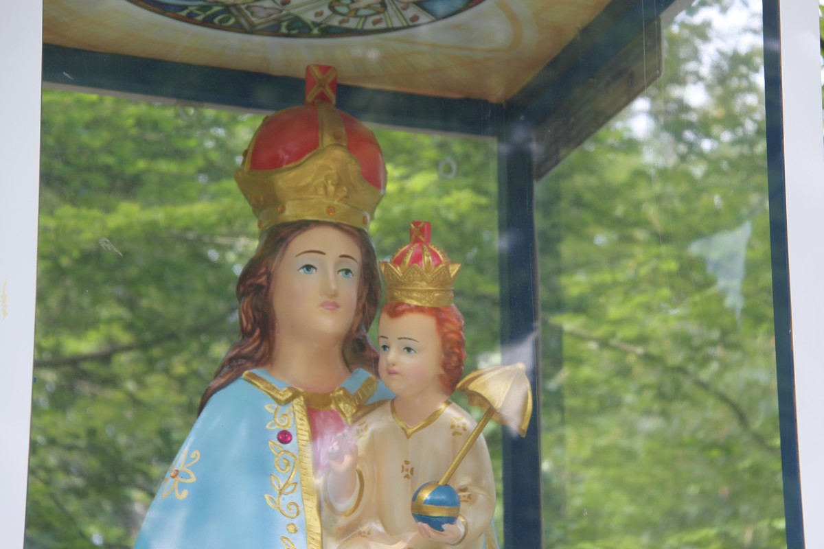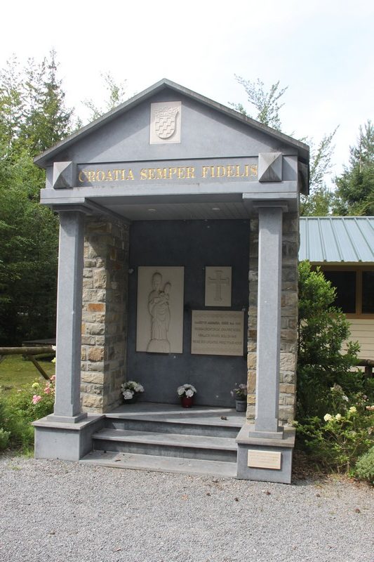 Statue de la Vierge à l’enfant vénérée à Bistrica dans le plus grand centre marial de la Croatie. Par cette petite chapelle, la communauté catholique croate de Liège a pu réaliser le souhait des pèlerins croates, d’ériger un monument qui témoigne de leur dévotion et de leur fidélité au Christ et à la Vierge des Pauvres.