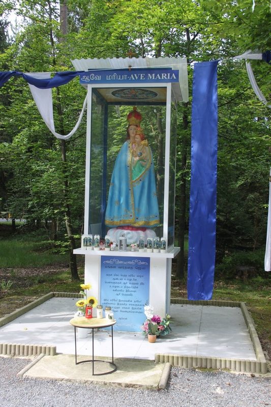 Chaque 1er samedi du mois, un groupe de prière vietnamien vient se recueillir à Banneux. Les membres de cette communauté ont construit une stèle, en l’honneur de Notre-Dame de La Vang, mère des martyrs.