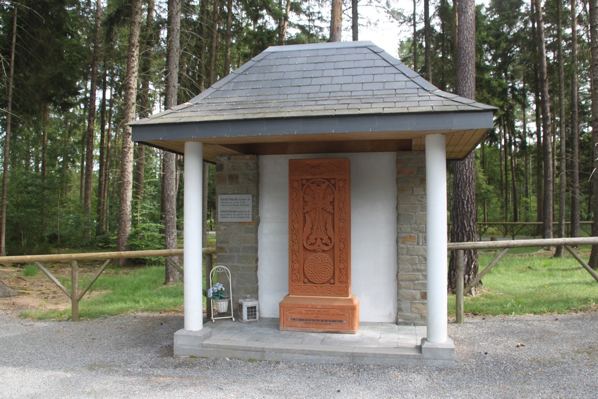 En 1999, une famille arménienne quittait l’Arménie et s’installait en Belgique. Grâce à un Arménien turc, ils connurent le sanctuaire de Banneux et y vinrent souvent en pèlerinage. Quand le père, du nom de Sarkis, fut sur le point de mourir, en 2009, il confia à sa femme et à ses fils son ardent désir d’offrir au sanctuaire de Banneux une croix typique d’Arménie, une khatchkar. Cette croix a la forme d’une ancre, symbole de l’inébranlable espérance que le Christ offre à l’humanité.