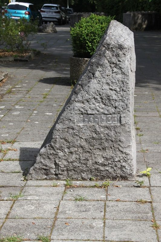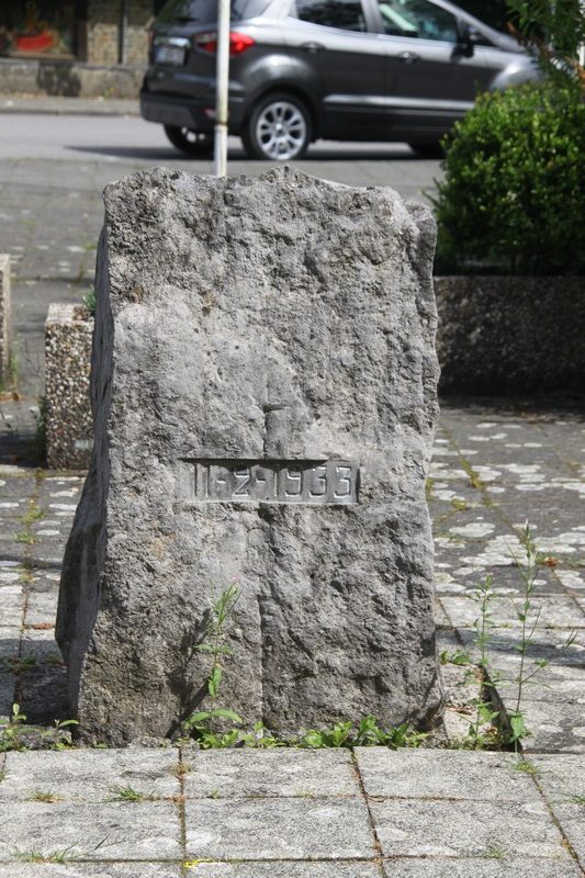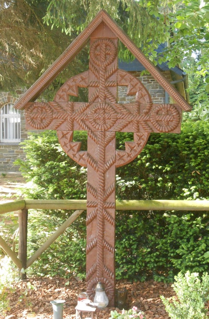 Ce sont des jeunes de La Calamine qui ont porté et érigé cette croix derrière le cloître de saint Grignion de Montfort, en 1956, lors de la révolution hongroise. Elle commémore les Hongrois tombés pour la liberté, à Budapest, cette même année. Elle porte l’inscription « Hongrie en sang » dans les couleurs nationales de ce pays (vert et rouge).