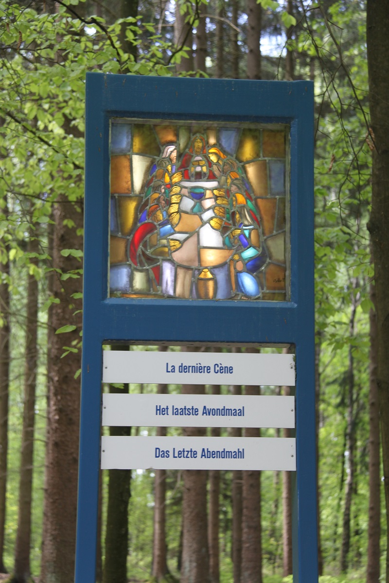 Le chemin de croix est appelé à fortifier la dévotion des pèlerins. Avant les 14 stations traditionnelles, on rencontre une station représentant la dernière Cène : l’Eucharistie est le sacrement de notre salut. La 16ème station prolonge les autres : c’est la transfiguration de la passion et de la mort de Jésus, par sa Résurrection.