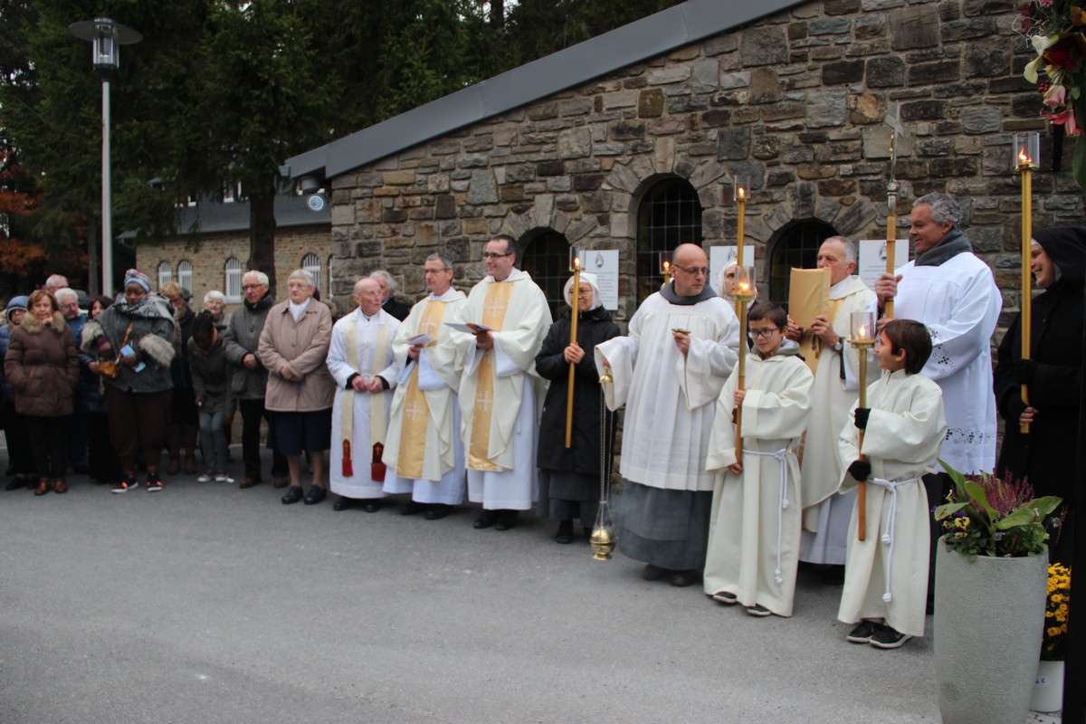Le Recteur bénit toute l’assemblée avec l’eau de la Source.