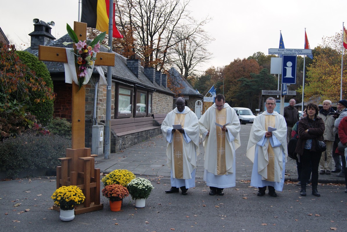 Arrivés à la Croix, les lecteurs redisent des paroles du pape François :